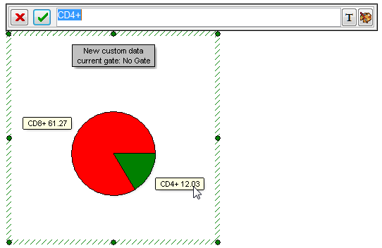 3. | Click the green check mark in the Caption editor bar or hit Enter on the keyboard to accept the change. In the example below, the Caption for the green sector (slice) has been amended with the text "CD4+". |